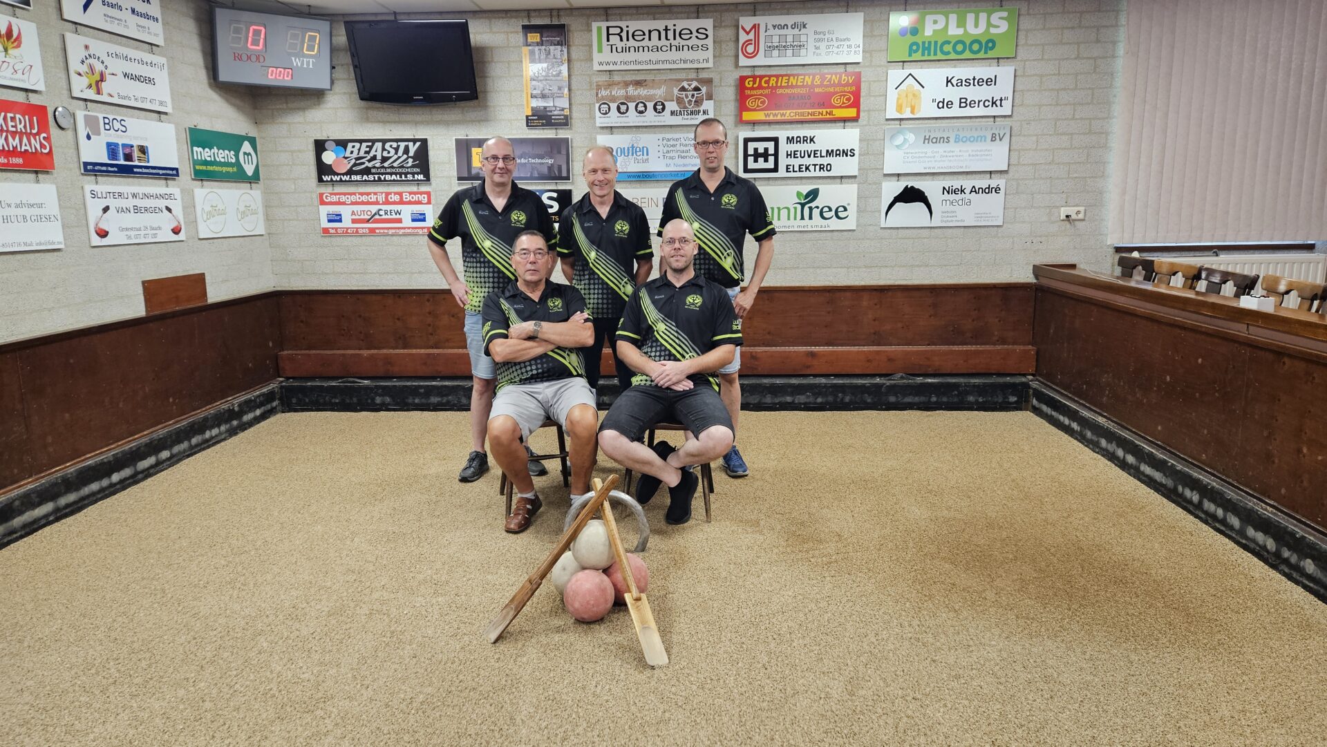 Het was lang geleden dat het standaardteam van de Flatsers tegenstander was van beugelclub st. Agatha uit Grathem. Roy stelde het eerste punt veilig, na een moeizaam begin kwam hij goed op dreef en klaarde het klusje behoedzaam. De senior uit het team miste op een cruciaal moment een schuine bol op de ring, dan volgen er nog enkele moeilijke kansen op herstel maar dat liep ook niet zoals Piet het voor ogen had en daarmee ging het punt naar Grathem. De derde partij werd een prooi voor Esther, scherp gefocust zette ze haar tegenstander opzij en zo stond er 2-1 op het scorebord. Bob had mogelijkheden op de stand 26-26 om voor een kleine stunt te zorgen, helaas kwam de bol niet vergenoeg bij de tegenstander waardoor er mogelijkheden kwamen voor deze, een slagbeurt volgde en Bob kwam 26-28 achter. Bob wou vervolgens de tegenstander ook uitslaan maar dat lukte maar deels, stand 26-28. Vervolgens Flatst de tegenstander en scoort Bob 28-28. Een tweede kans voor de winst werd wel benut door Grathem en zo was het weer gelijk, 2-2. Het slotstuk was er een met veel geweld, in positieve zin dan wel. Sander maakte slim gebruik van de hard gespeelde bollen van zijn tegenstander. Het was dan ook een kwestie van geduld om het beste van het spel in handen te krijgen en zo geschiedde, kalmpjes aan speelde Sander het derde punt uit.